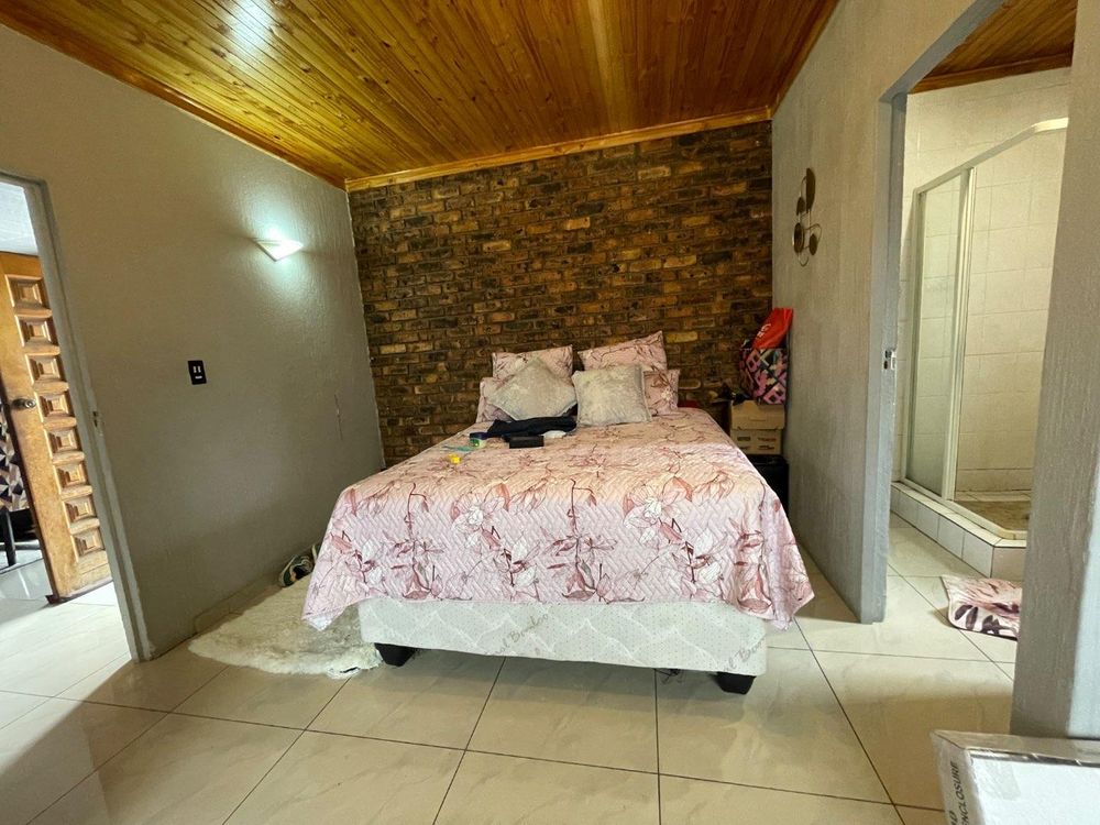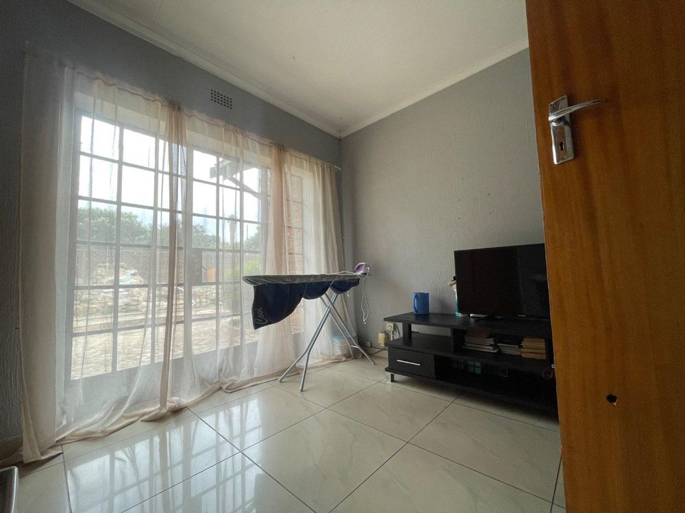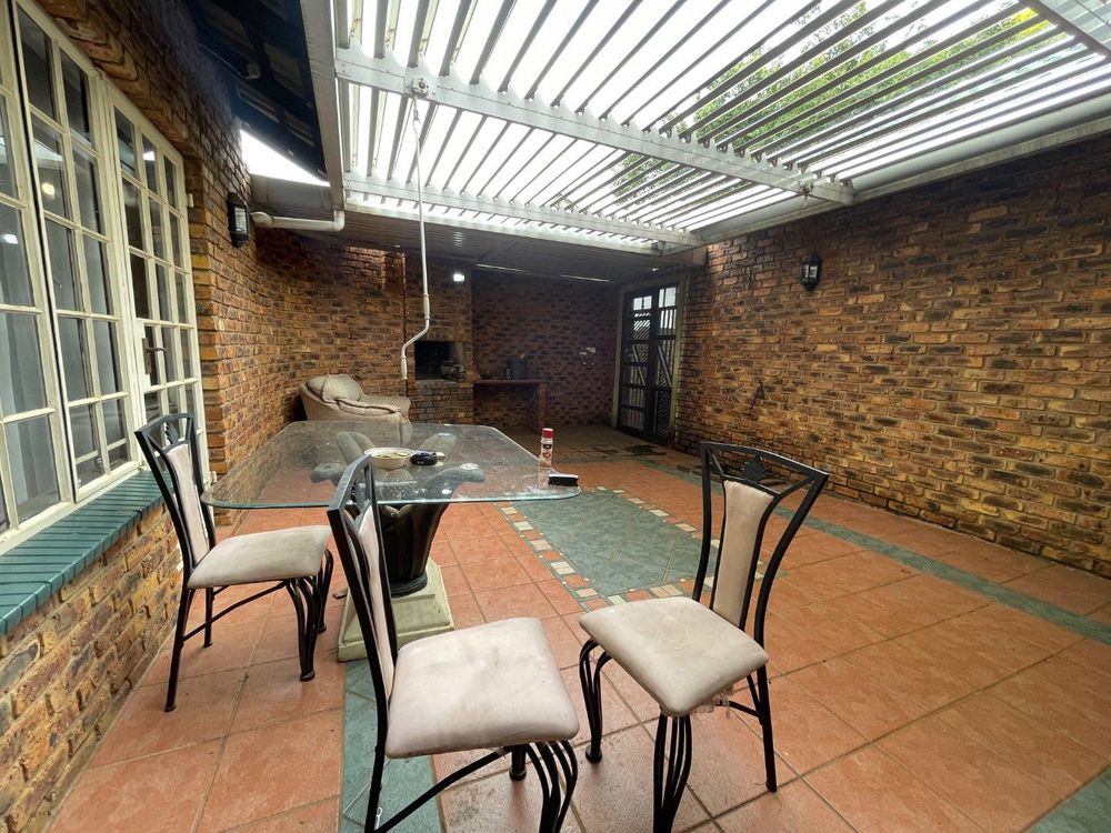 The kitchen flows seamlessly into a well sized living room, which leads to an enclosed patio with a built-in braai area, perfect for entertaining. The living room also connects to a separate dining room, creating a comfortable and practical layout throughout the home.