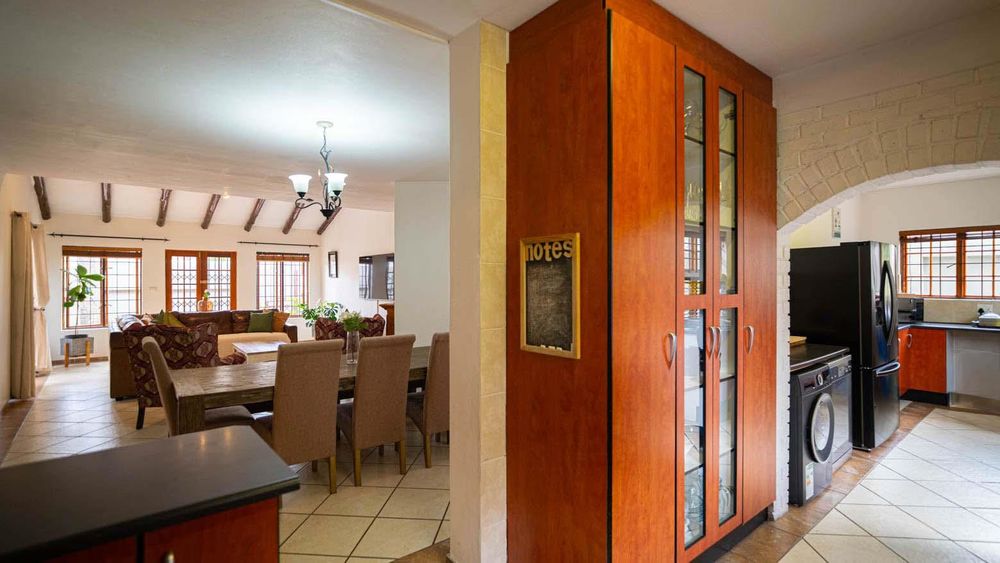 The property features four bedrooms and three bathrooms, with light-filled living areas that feel open and welcoming. The large kitchen and scullery are a standout, offering space for multiple appliances, excellent storage, and generous work surfaces, ideal for everyday living and entertaining.