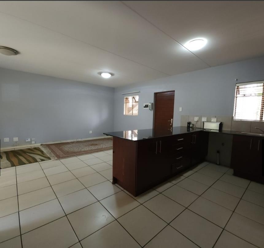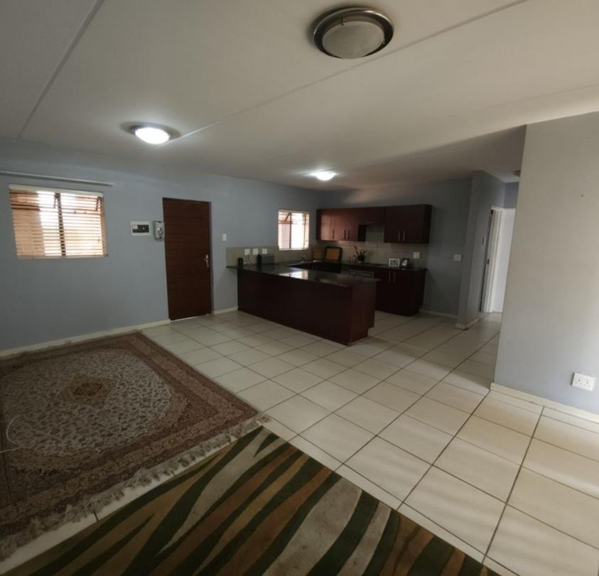 Large open plan area, with modern built in kitchen cupboards and covered patio.