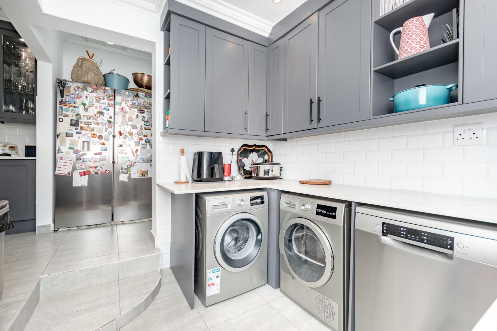 As you walk into this lovely home, you're greeted by an open plan layout with a kitchen boasting of modern fittings as well as a spacious scullery to meet all your storage and functional needs.