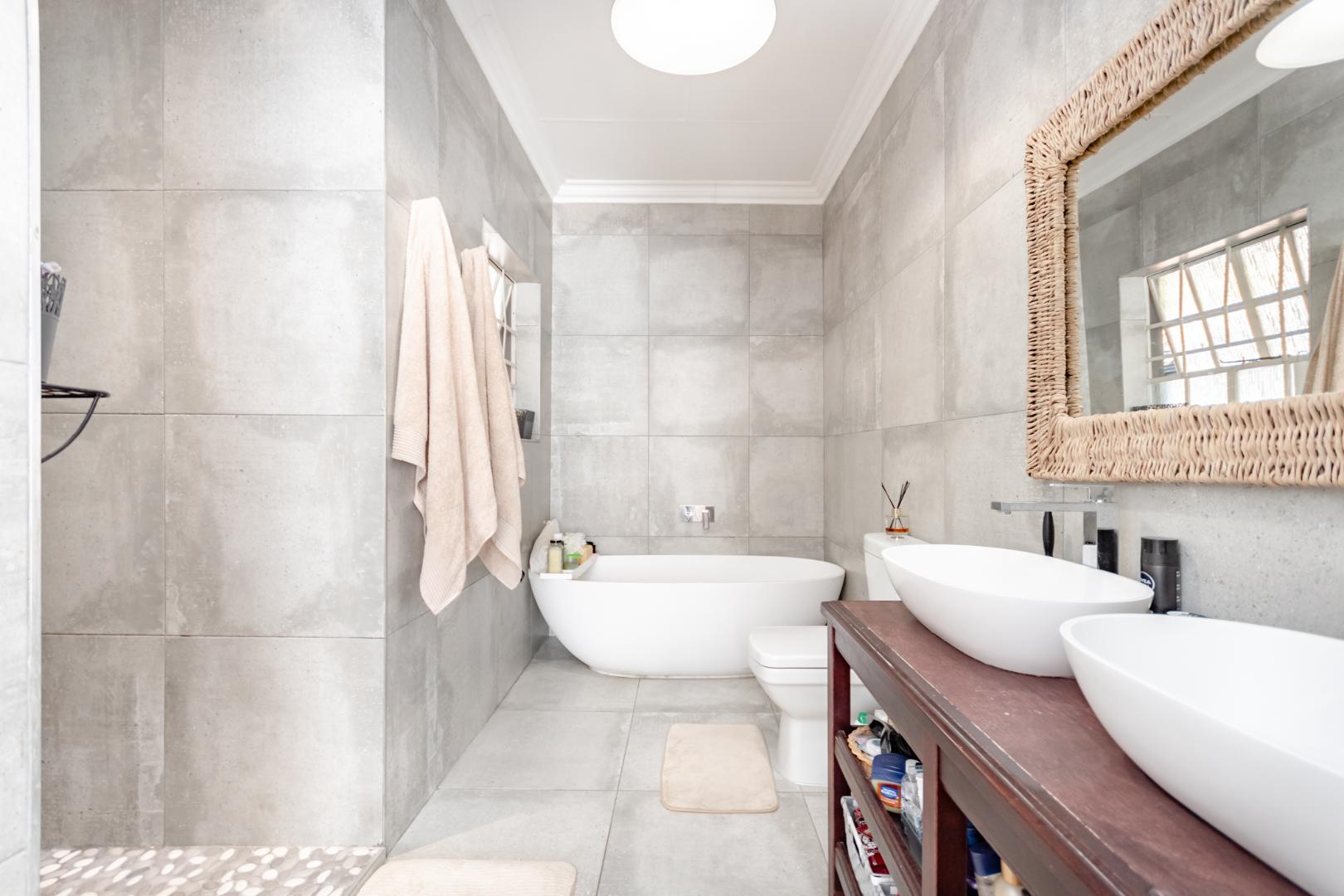 As you walk further down the passage, you'll end up in the main-bedroom, which has an exquisite walk-in closet and a full bathroom which ties together the design of the other bathrooms.