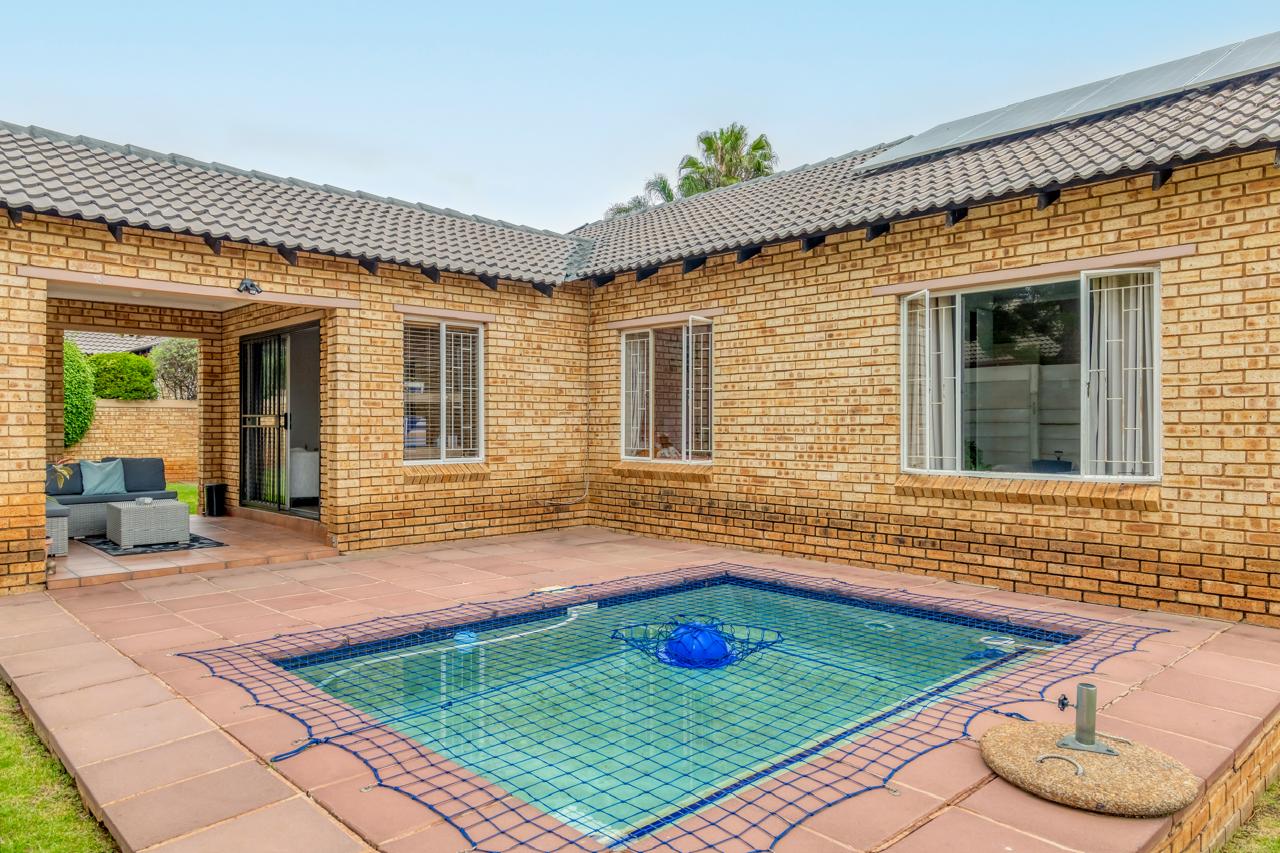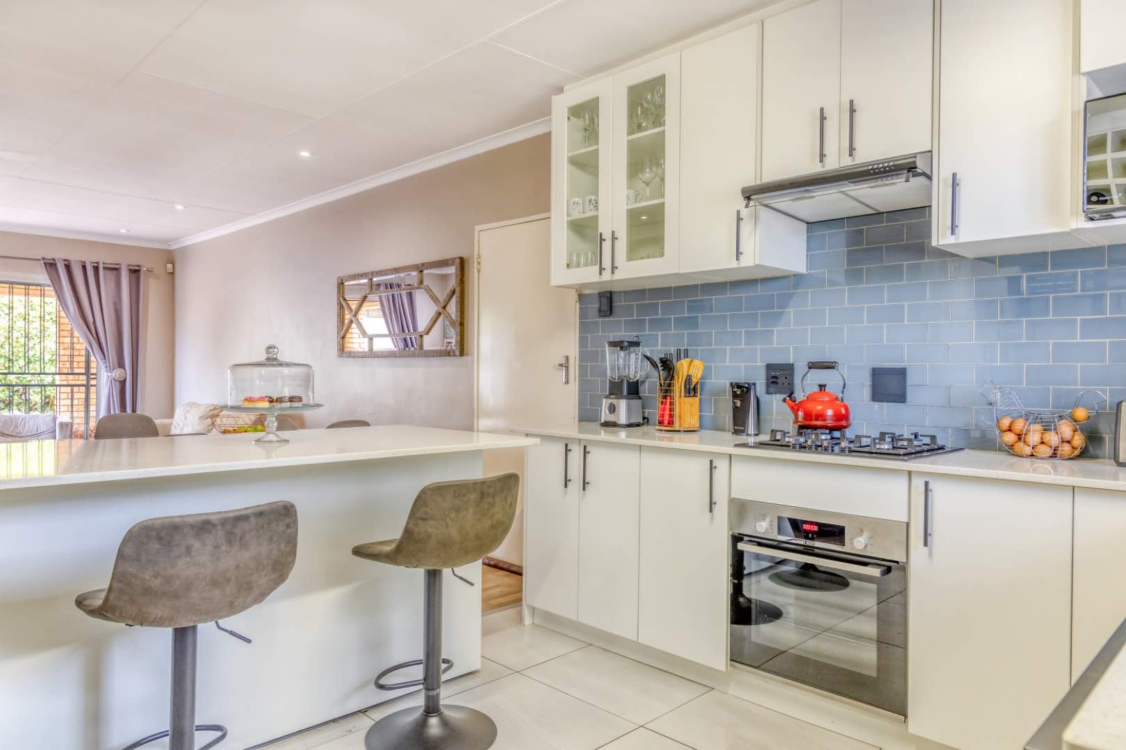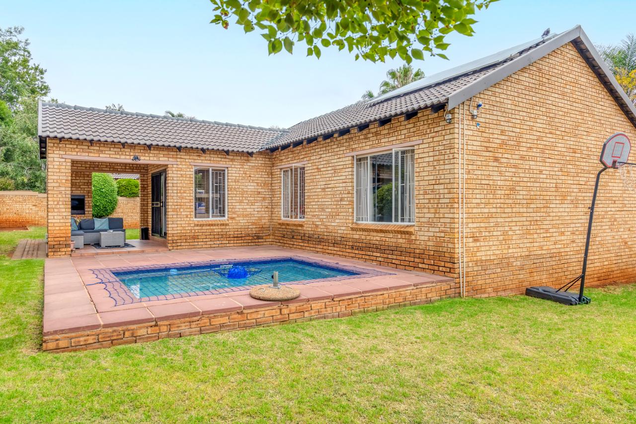 This home offers a safe and tranquil environment for peaceful living. The warm and homely townhouse has a beautiful and spacious patio with built-in braai, overlooking a lovely, spacious and well kept garden, splash pool and a kiddies jungle-gym, perfect for entertainment.